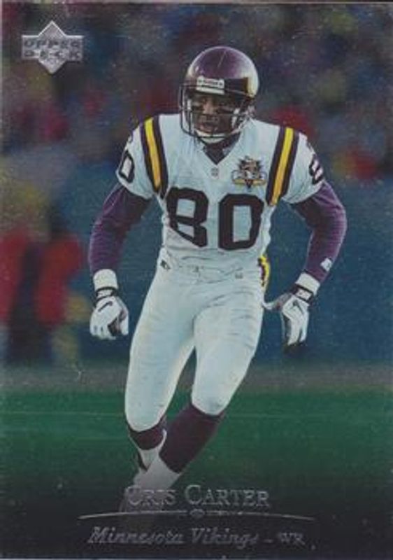 The Cris Carter 1996 Upper Deck Silver Collection #167 Base card is 1 of 2 Cris Carter's card variations in the 1996 Upper Deck Silver Collection set being tracked by Sports Card Investor, including Team Helmets.