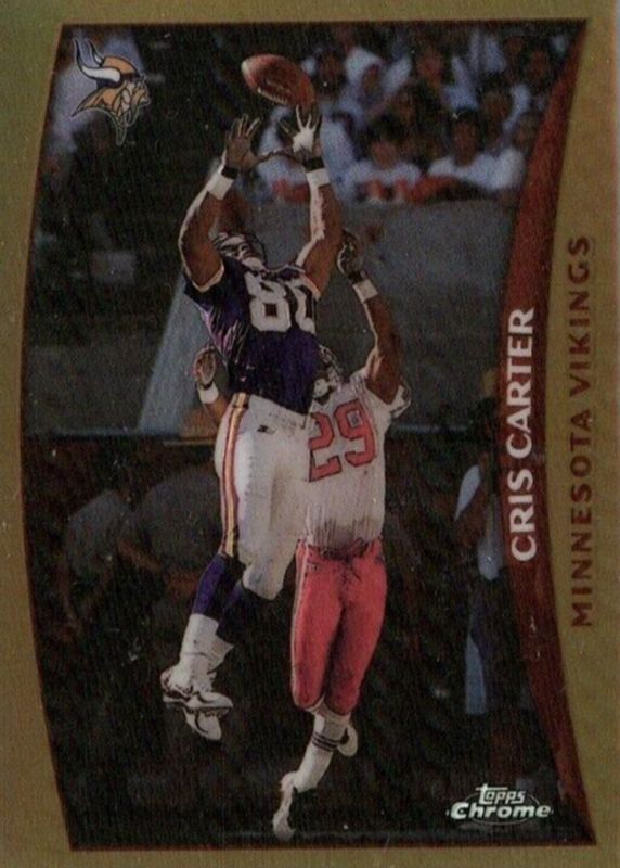 This card is 1 of 6 Cris Carter's card variations in the 1998 Topps Chrome set being tracked by Sports Card Investor, including Base, Measures of Greatness, Measures of Greatness - Refractor, Season's Best, and Season's Best - Refractor.