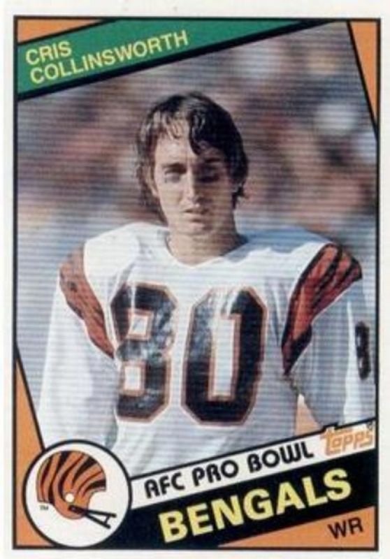 The Cris Collinsworth 1984 Topps #37 Base card is 1 of 5 Cris Collinsworth's card variations in the 1984 Topps set being tracked by Sports Card Investor, including #32 Base, #38 Base, 1984 NFL Football Stars Collector's Edition (Glossy Send Ins), and #19 1984 NFL Football Stars Collector's Edition (Glossy Send Ins).