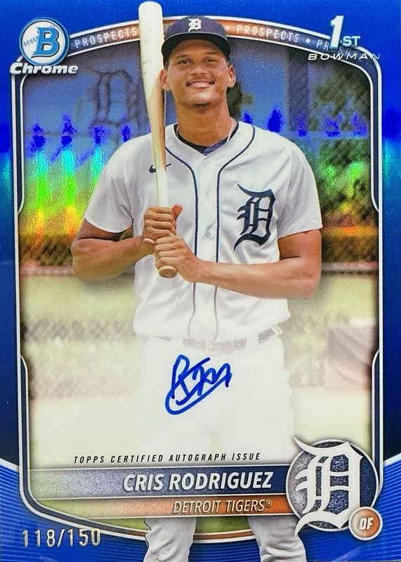 CRIS RODRIGUEZ /150 BLUE 1ST ON CARD AUTO AUTOGRAPH 2025 BOWMAN CHROME TIGERS RC