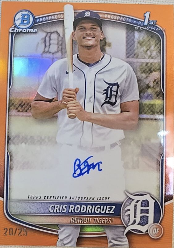 Cris Rodriguez Tigers 2025 Bowman Chrome Orange Refractor AUTO 25/25 CPA-CR