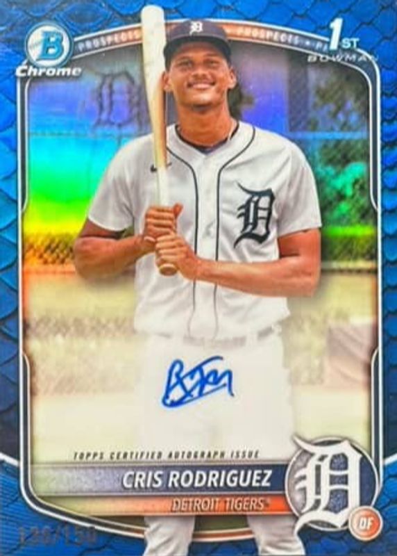 Cris Rodriguez 2025 Bowman Chrome #CPA-CR Prospect Auto - Reptilian Blue Refractor /150 (1st) RAW Price Guide