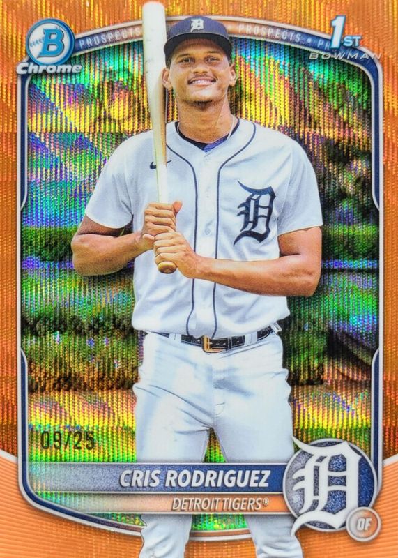 Best Prices Available For Sale of Cris Rodriguez 2025 Bowman Chrome #BCP-250 Prospects - Orange Wave Refractor /25 (1st)
