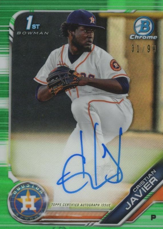 2019 Bowman Chrome Green Refractor Cristian Javier 31/99 Auto Autograph RC