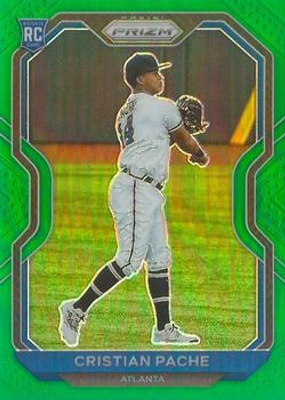 The Cristian Pache 2021 Prizm #144 Green Rookie card is 1 of 75 Cristian Pache's card variations in the 2021 Prizm set being tracked by Sports Card Investor, including Base, Blue, Blue Velocity, Carolina Blue, and Cosmic Haze.