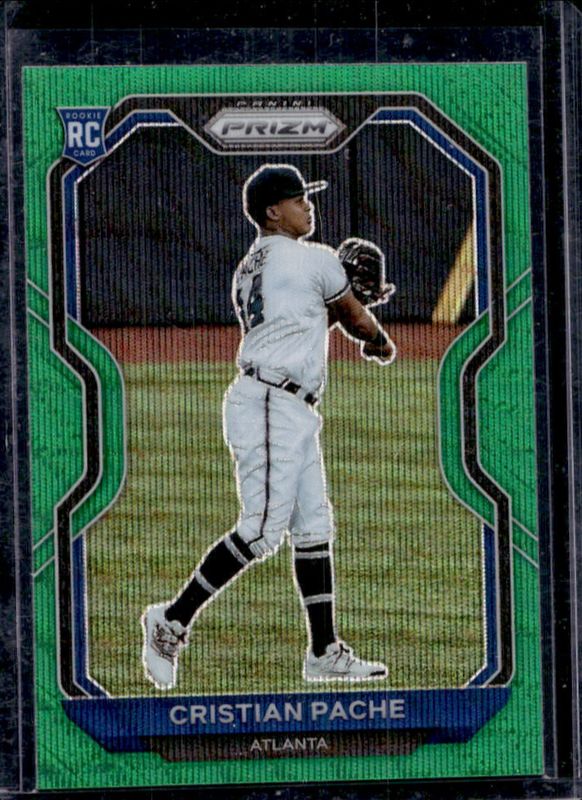 The Cristian Pache 2021 Prizm #144 Green Wave Rookie card is 1 of 75 Cristian Pache's card variations in the 2021 Prizm set being tracked by Sports Card Investor, including Base, Blue, Blue Velocity, Carolina Blue, and Cosmic Haze.