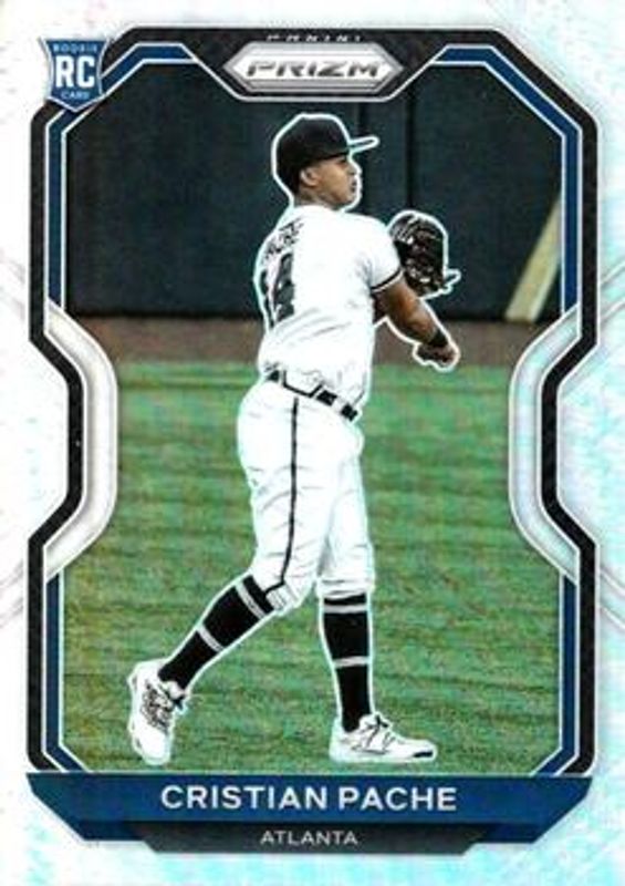 The Cristian Pache 2021 Prizm #144 Silver Rookie card is 1 of 75 Cristian Pache's card variations in the 2021 Prizm set being tracked by Sports Card Investor, including Base, Blue, Blue Velocity, Carolina Blue, and Cosmic Haze.