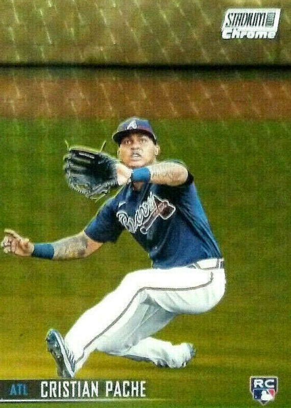 This card is 1 of 18 Cristian Pache's card variations in the 2021 Topps Stadium Club set being tracked by Sports Card Investor, including Base, Image Variation /SP, Black Foil, Black & White, and Chrome.
