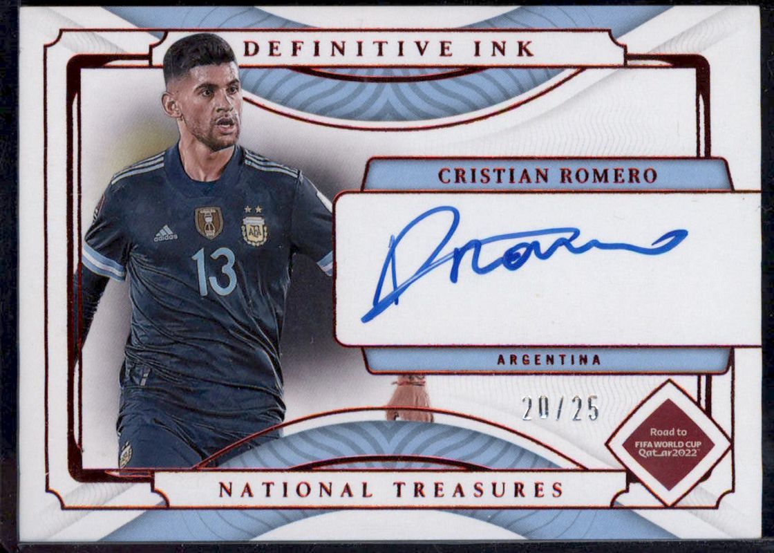 Cristian Romero 2022 National Treasures World Cup #DI-CRO Definitive Ink - Ruby /15 RAW Price Guide