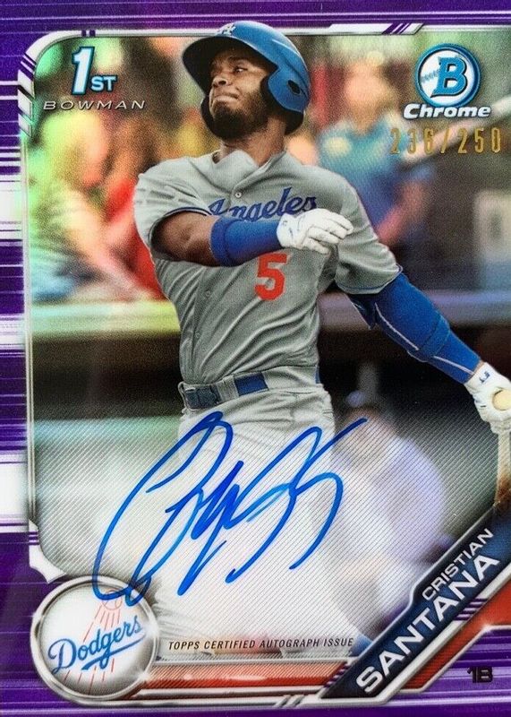 Cristian Santana 2019 Bowman Chrome Purple Refractor Auto /250 Dodgers