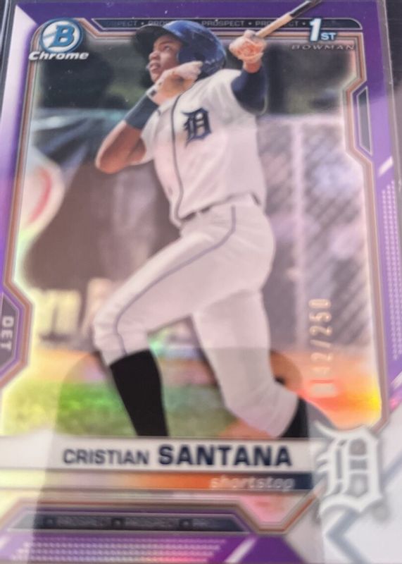 Best Prices Available For Sale of Cristian Santana 2021 Bowman Chrome #BCP-186 Prospects - Purple Refractor /250 (1st)