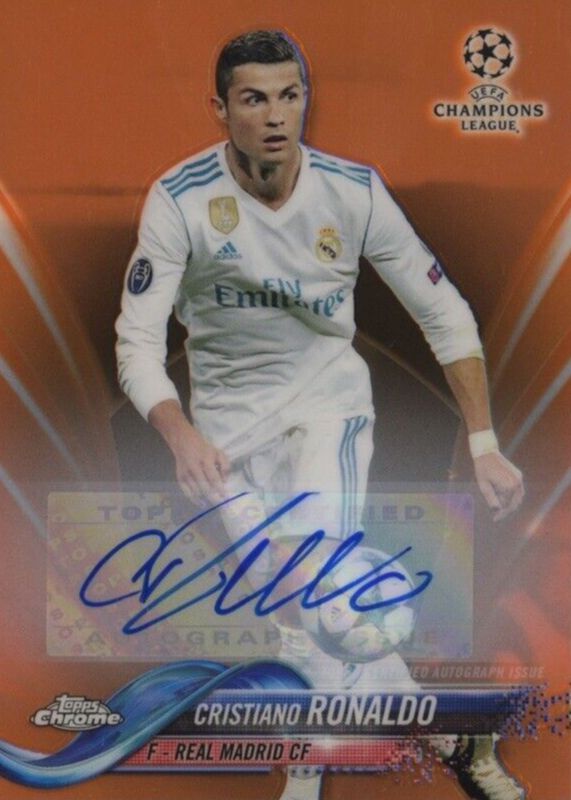 Auctions Ending Soon for Cristiano Ronaldo 2017 Topps Chrome UEFA Champions League #93 Autographs - Orange Refractor /25 RAW