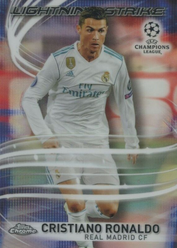 The Cristiano Ronaldo 2017 Topps Chrome UEFA Champions League #LS-CR Lightning Strike card in Raw condition has moved up $0.92 (+4.8%) in the last 30 days and was last sold for $19.92 .