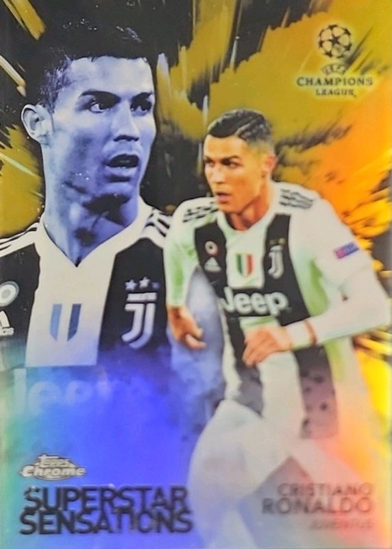 The Cristiano Ronaldo 2018 Topps Chrome UEFA Champions League #SS-CR Superstar Sensations - Gold Refractor /50 card in Raw condition has not changed in price in the last 30 days and was last sold for $64.80 .