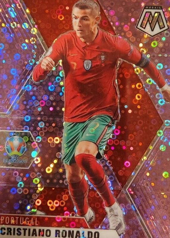 This card is 1 of 30 Cristiano Ronaldo's card variations in the 2020 Mosaic Euro set being tracked by Sports Card Investor, including Blue Pulsar, Choice Red & Green, Gold Pulsar, Green, and Pink Camo.