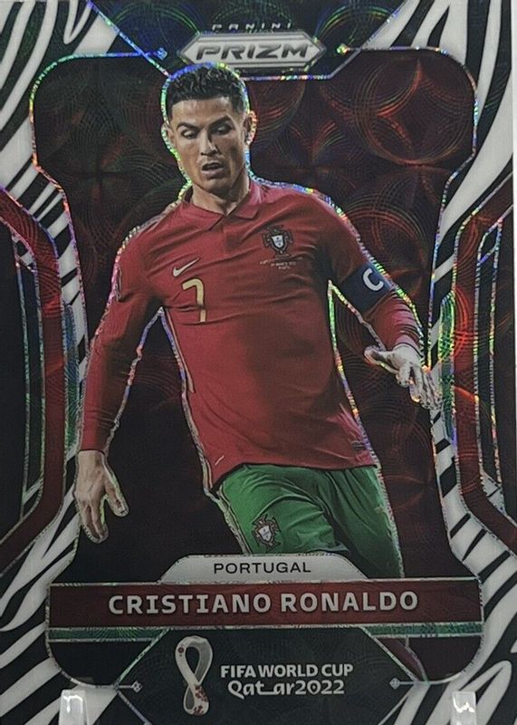 2022 Panini Prizm FIFA World Cup Qatar Soccer Zebra Cristiano Ronaldo Case Hit
