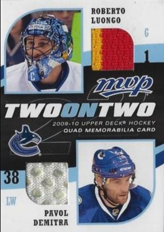 Cristobal Huet / Patrick Sharp / Pavol Demitra / Roberto Luongo 2009 Upper Deck MVP #J-LDHS Two on Two Jerseys RAW Price Guide