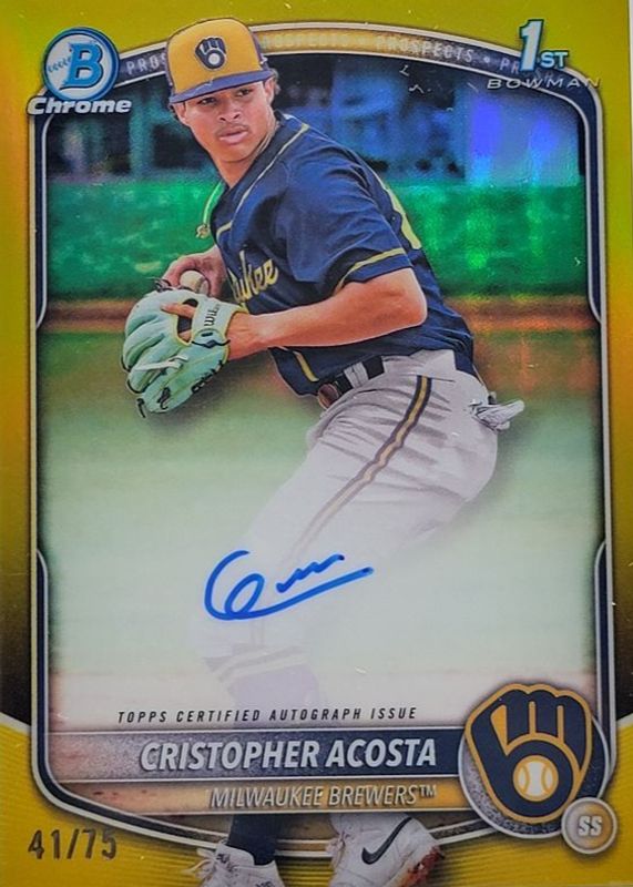 2025 Bowman Chrome CRISTOPHER ACOSTA 1st AUTO True Yellow Refractor /75 Brewers
