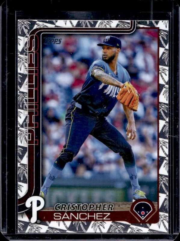 The Cristopher Sanchez 2025 Topps #109 Spring Training card is 1 of 64 Cristopher Sanchez's card variations in the 2025 Topps set being tracked by Sports Card Investor, including Base, Aqua Holo Foil, Diamante Foil, Holo Foil, and Pink Diamante Foil.
