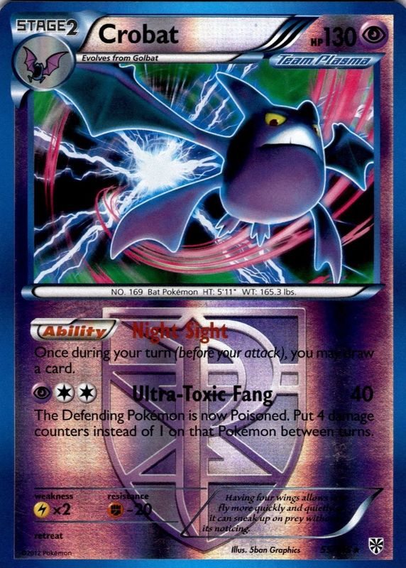 2012 POKEMON CROBAT (Team Plasma) 55/135 PLASMA STORM-RARE-REVERSE HOLO NM/LP c1