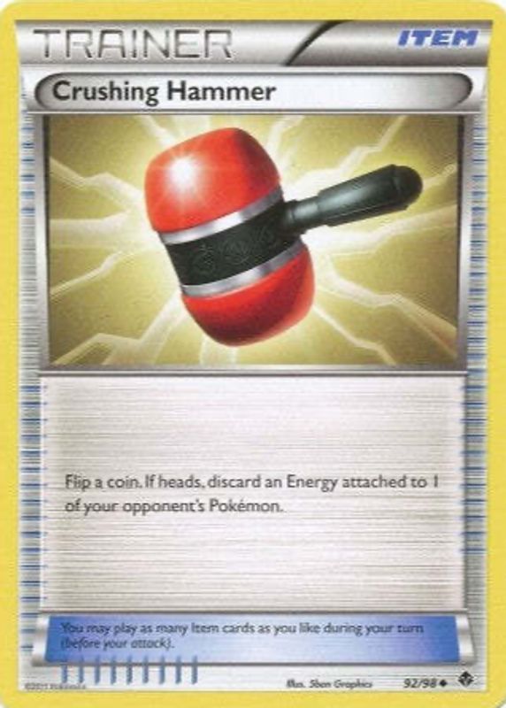 The Crushing Hammer 2011 Black & White: Emerging Powers #92/98 Base card in Raw TCG (Near Mint) condition has not changed in price in the last 30 days and was last sold for $1.76 .