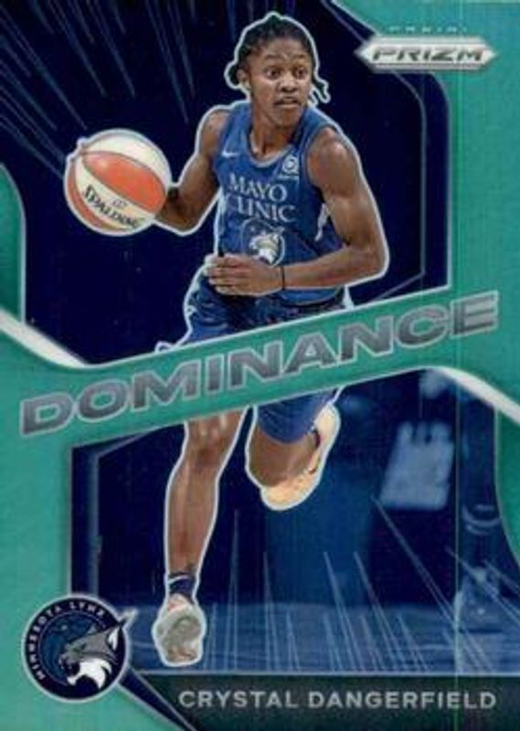 The Crystal Dangerfield 2021 Prizm WNBA #13 Dominance - Green Rookie card is 1 of 78 Crystal Dangerfield's card variations in the 2021 Prizm WNBA set being tracked by Sports Card Investor, including Base, Green, Green Ice, Hyper, and Ice.