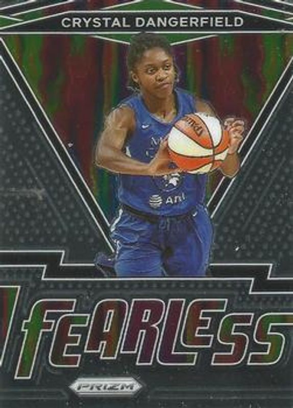 The Crystal Dangerfield 2021 Prizm WNBA #16 Fearless Rookie card is 1 of 78 Crystal Dangerfield's card variations in the 2021 Prizm WNBA set being tracked by Sports Card Investor, including Base, Green, Green Ice, Hyper, and Ice.
