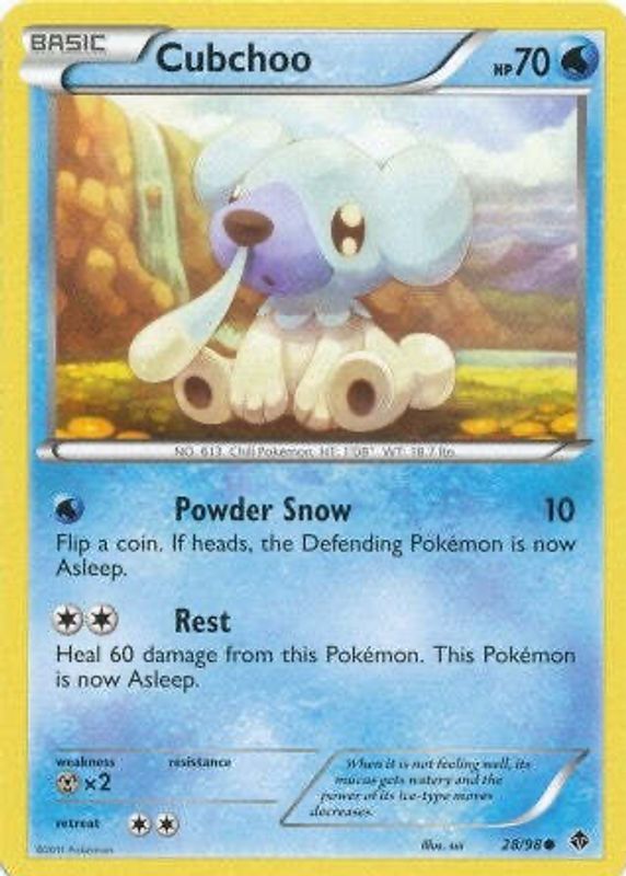 Cubchoo 2011 Black & White: Emerging Powers #28/98 Base RAW TCG (LIGHTLY PLAYED) Price Guide