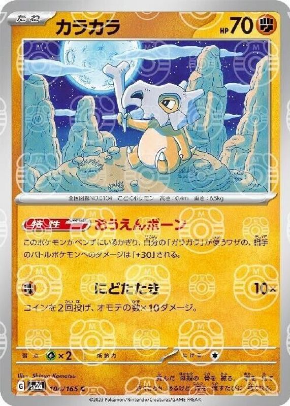Cubone 2023 Japanese Scarlet & Violet: 151 #104/165 Master Ball Reverse Holo RAW TCG (NEAR MINT) Price Guide