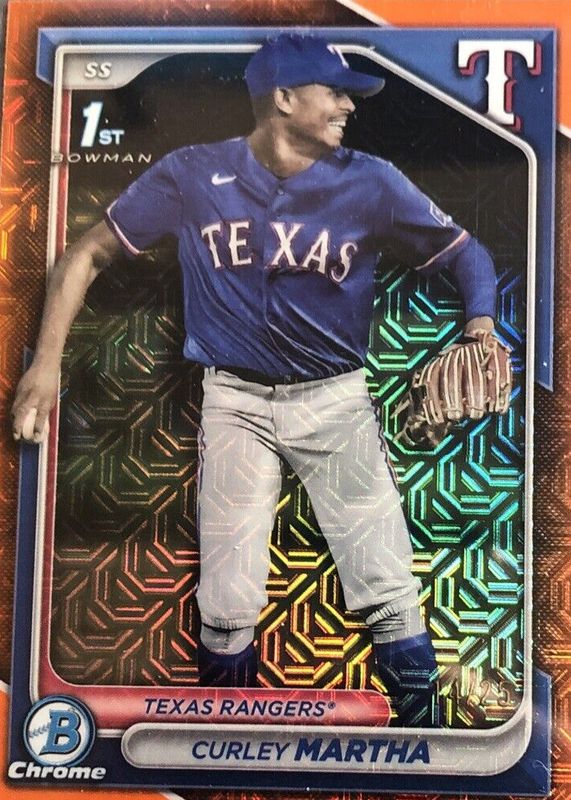 2024 Bowman Chrome Curley Martha 1st Orange MOJO Refractor 22/25 BCP-168 Rangers