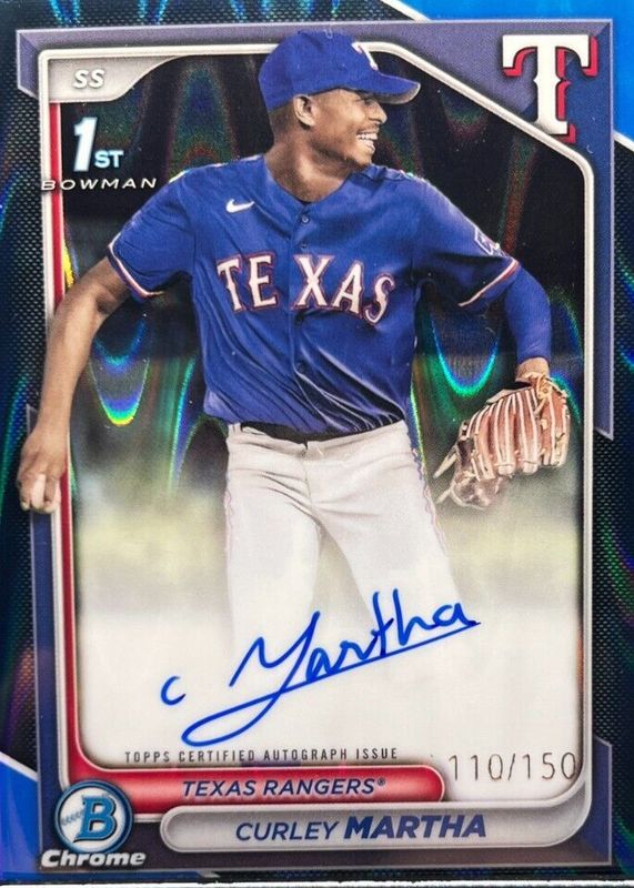 Curley Martha 2024 Bowman Chrome 1st Auto Blue Raywave Refractor /150 Rangers