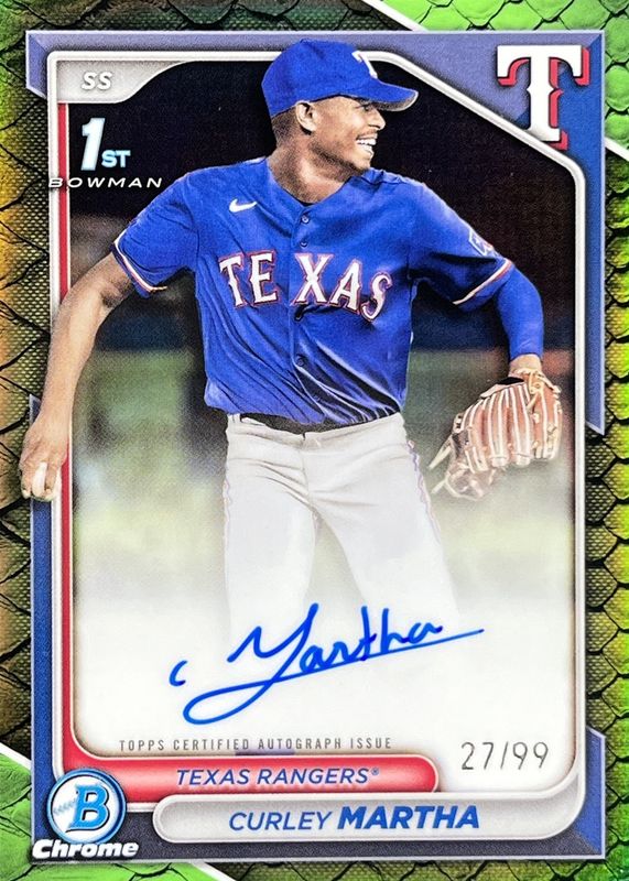 2024 Bowman Chrome Curley Martha 1st Auto Reptilian Green /99 Rangers