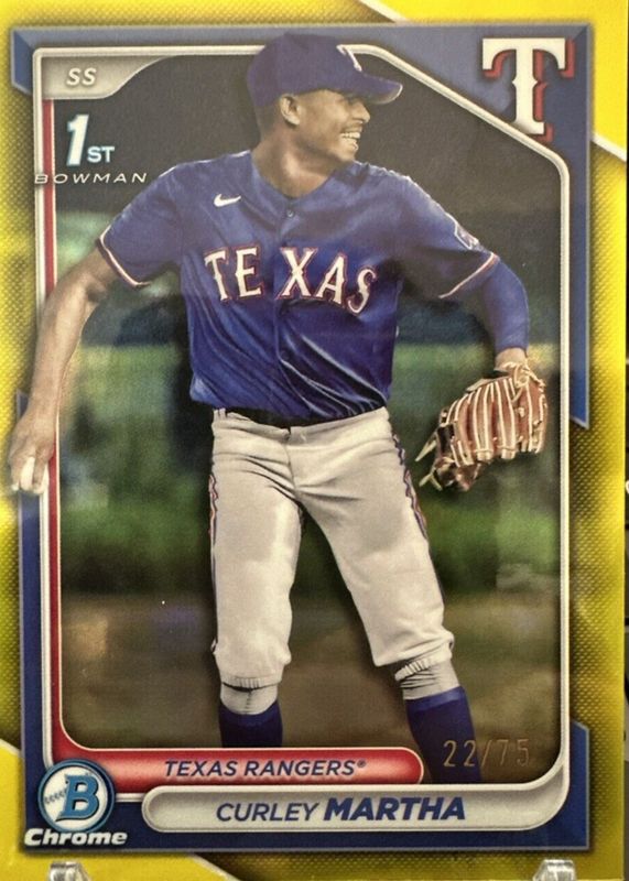Curley Martha 2024 Bowman Chrome Yellow Refractor 1st Bowman #’d /75 Rangers