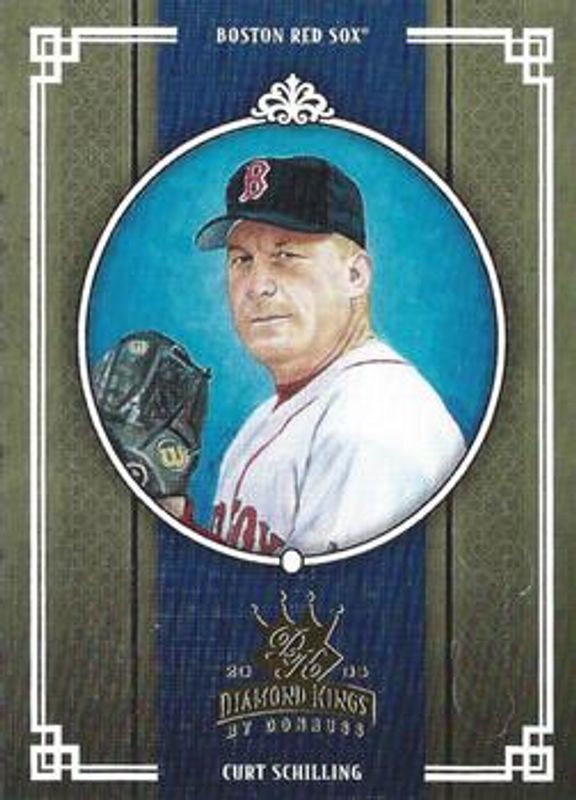 The Curt Schilling 2005 Diamond Kings #39 DK Challenge card is 1 of 247 Curt Schilling's card variations in the 2005 Diamond Kings set being tracked by Sports Card Investor, including #327 Base, #417 Base, #39 Base, #39 Black & White, and #417 Framed Red.