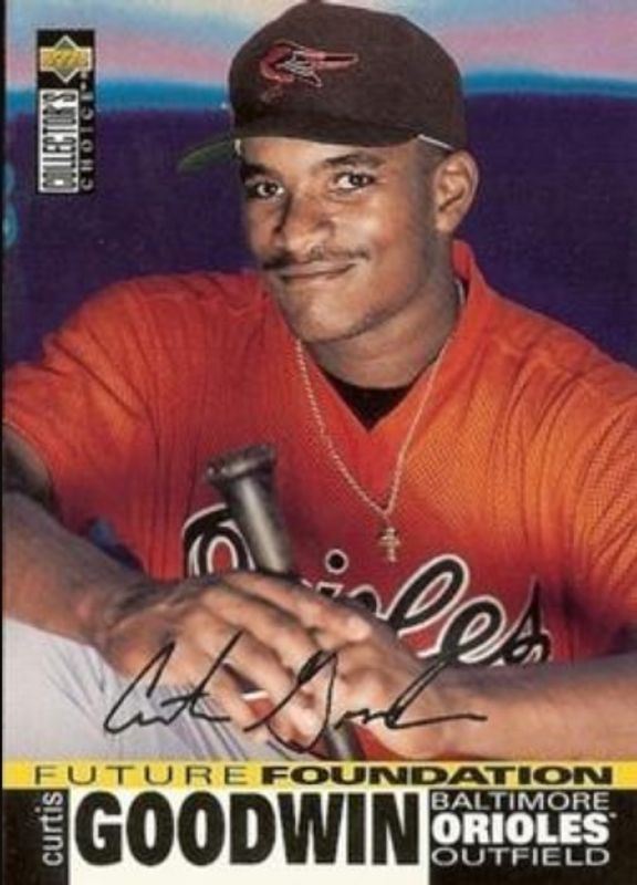 The Curtis Goodwin 1995 Upper Deck Collector's Choice #37 Silver Signatures Rookie card is 1 of 3 Curtis Goodwin's card variations in the 1995 Upper Deck Collector's Choice set being tracked by Sports Card Investor, including Base, and Gold Signatures.