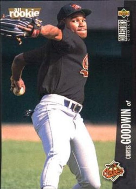 The Curtis Goodwin 1996 Upper Deck Collector's Choice #50 Base card is 1 of 4 Curtis Goodwin's card variations in the 1996 Upper Deck Collector's Choice set being tracked by Sports Card Investor, including Base, Gold Signatures, and Silver Signatures.