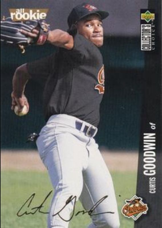 The Curtis Goodwin 1996 Upper Deck Collector's Choice #50 Gold Signatures card is 1 of 4 Curtis Goodwin's card variations in the 1996 Upper Deck Collector's Choice set being tracked by Sports Card Investor, including #50 Base, #769 Base, and #50 Silver Signatures.