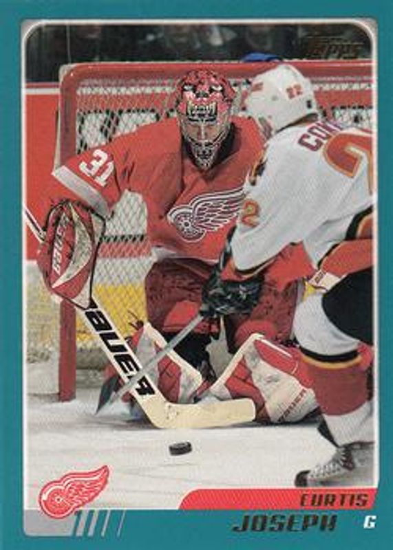 The Curtis Joseph 2003 Topps #130 Base card is 1 of 6 Curtis Joseph's card variations in the 2003 Topps set being tracked by Sports Card Investor, including Pre Production, Blue /500, Red /100, Gold /50, and Lost Rookie Cards.
