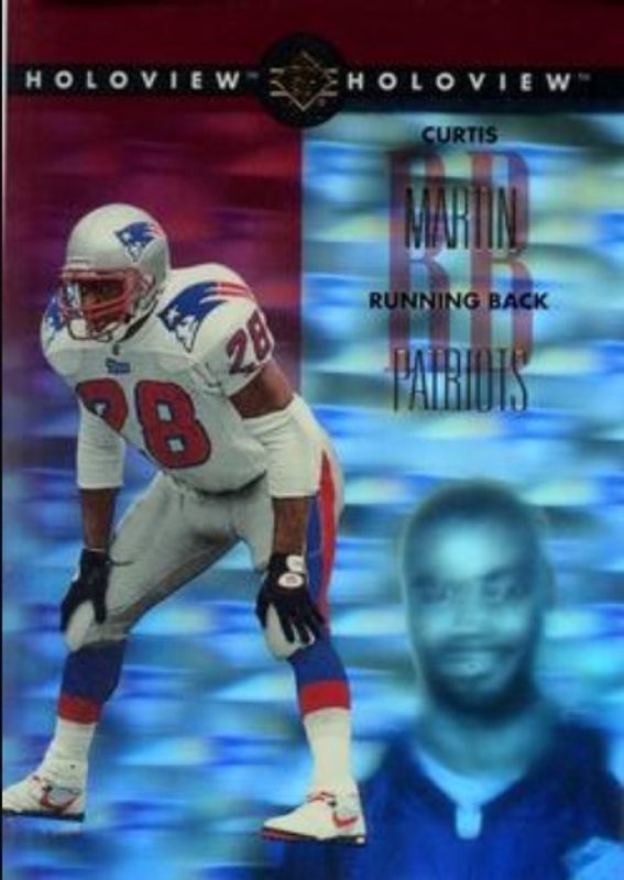 The Curtis Martin 1996 SP #14 Holoview card is 1 of 5 Curtis Martin's card variations in the 1996 SP set being tracked by Sports Card Investor, including Base, Explosive, Focus on the Future, and Holoview Die-Cut.