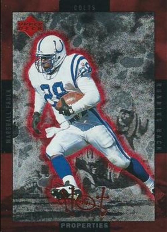 The Curtis Martin / Marshall Faulk 1996 Upper Deck #HT-15 Hot Properties card is 1 of 2 Curtis Martin / Marshall Faulk's card variations in the 1996 Upper Deck set being tracked by Sports Card Investor, including Hot Properties Gold.