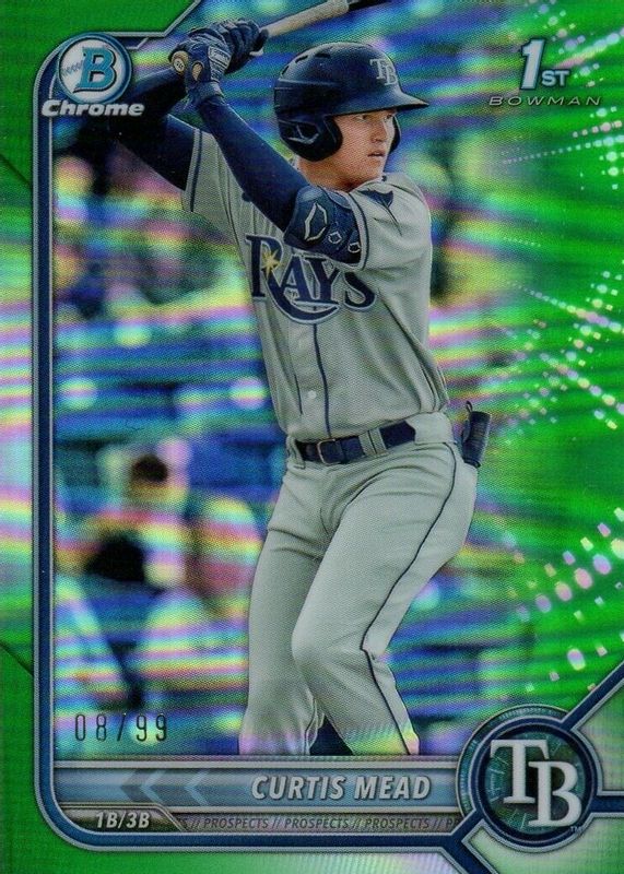 Curtis Mead 2022 Bowman Chrome Green 🍀 Refractor #/99 BCP-10 Tampa Bay Rays RC