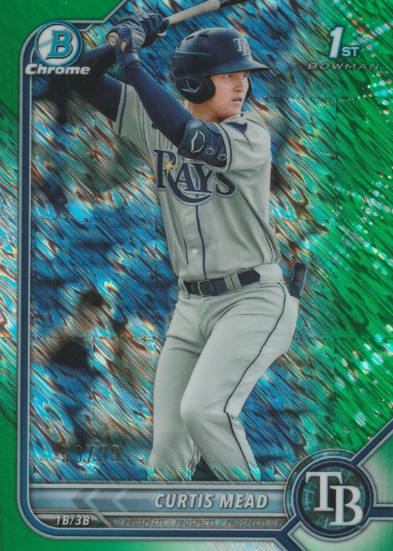Curtis Mead 2022 Bowman #BCP-10 Chrome Prospects - Green Shimmer Refractor /99 (1st) RAW Price Guide