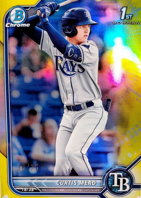 2022 Bowman Chrome CURTIS MEAD RC Prospect Yellow Refractor /75 Rays JE203