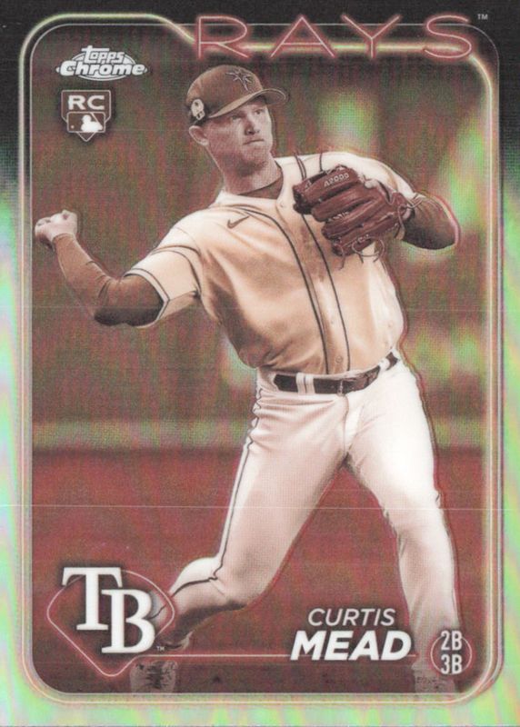 This card is 1 of 108 Curtis Mead's card variations in the 2024 Topps Chrome set being tracked by Sports Card Investor, including Base, Image Variation (No Cap), Negative Refractor, Pink Refractor, and Prism Refractor.