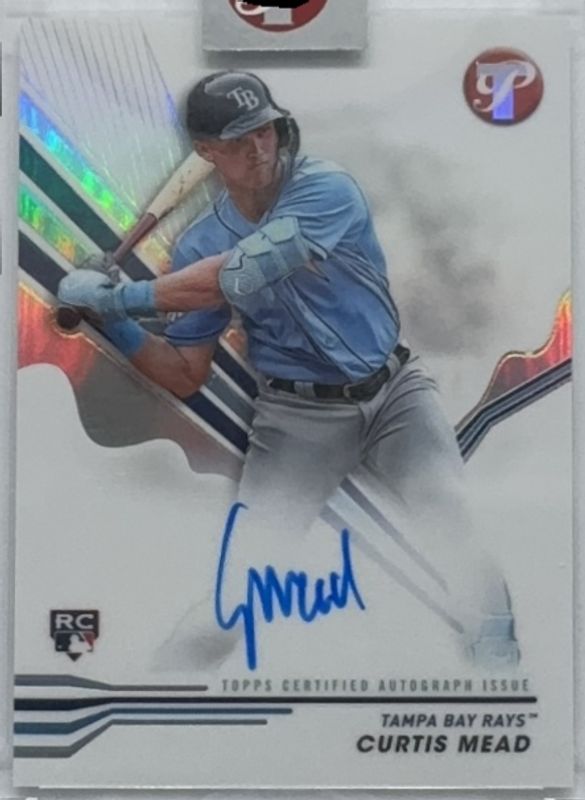 The Curtis Mead 2024 Topps Pristine #PA-CME Pristine Autographs Rookie card is 1 of 35 Curtis Mead's card variations in the 2024 Topps Pristine set being tracked by Sports Card Investor, including Base, Pristine Refractor, Refractor, Green Refractor /150, and Pristine Purple Refractor /99.