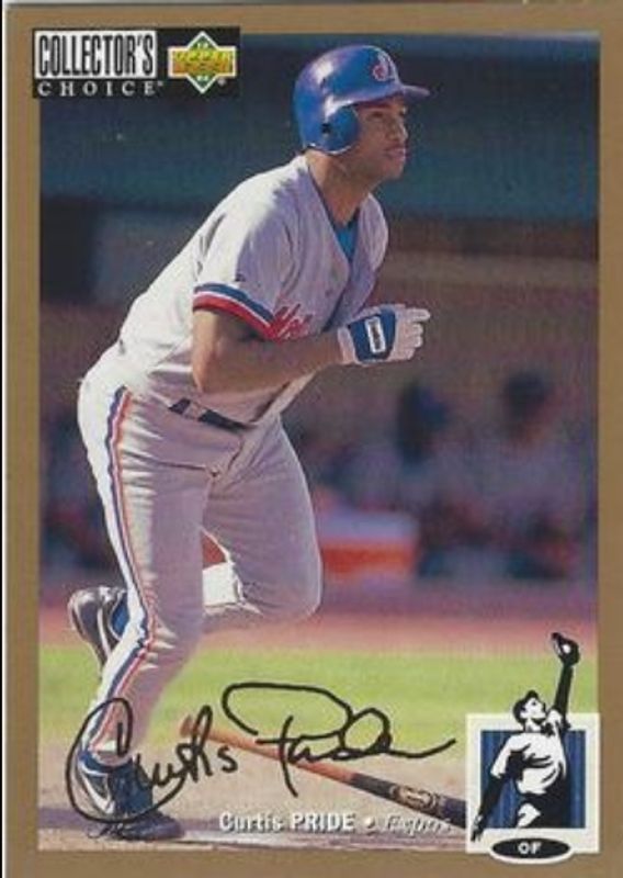 The Curtis Pride 1994 Upper Deck Collector's Choice #233 Gold Signatures Rookie card is 1 of 3 Curtis Pride's card variations in the 1994 Upper Deck Collector's Choice set being tracked by Sports Card Investor, including Base, and Silver Signatures.