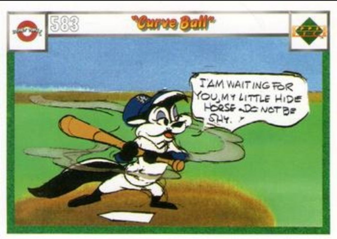 Other popular players in the 1990 Upper Deck Comic Ball set include Magnetic Field, Squeeze Play, Porky Pig and Charlie Dog, Acme Battle, and Father Knows Worst.