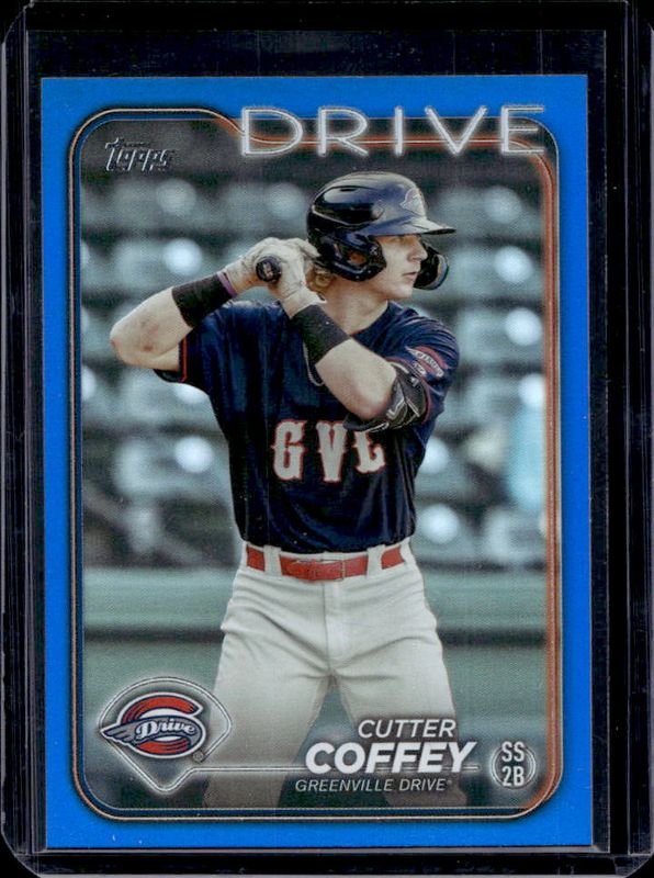 The Cutter Coffey 2024 Topps Pro Debut #PD-113 Blue Foil /150 card is 1 of 31 Cutter Coffey's card variations in the 2024 Topps Pro Debut set being tracked by Sports Card Investor, including Base, Fuchsia Foil /199, Sparkle Foil /175, Green Foil /99, and Aqua Foil /75.