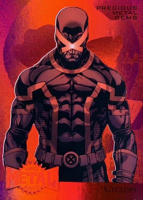 2015 Fleer Retro Marvel Cyclops 1995 Flair Metal Precious Gems Red #70/100 PMG