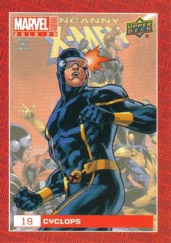 The Cyclops 2019 Upper Deck Marvel Annual #19 Base card is 1 of 9 Cyclops' card variations in the 2019 Upper Deck Marvel Annual set being tracked by Sports Card Investor, including Fractal, Pack Wars, Variant Cover, Hologram /20, and Printing Plate Cyan /1.
